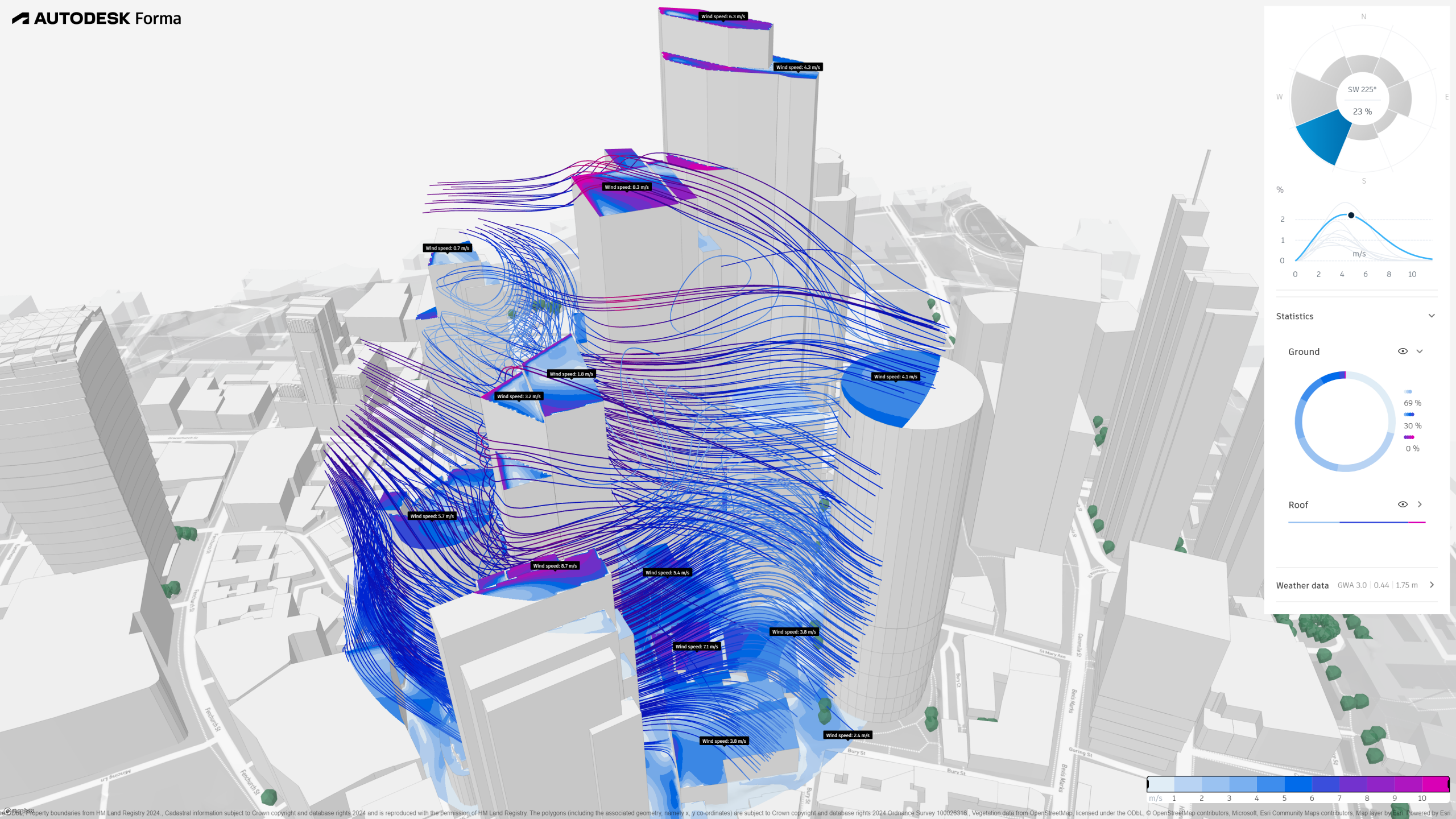 We now provide rapid wind analysis based on Ai model predictions. Detailed wind analysis uses computational fluid analysis. These results also include wind speed and estimated pedestrian wind comfort.